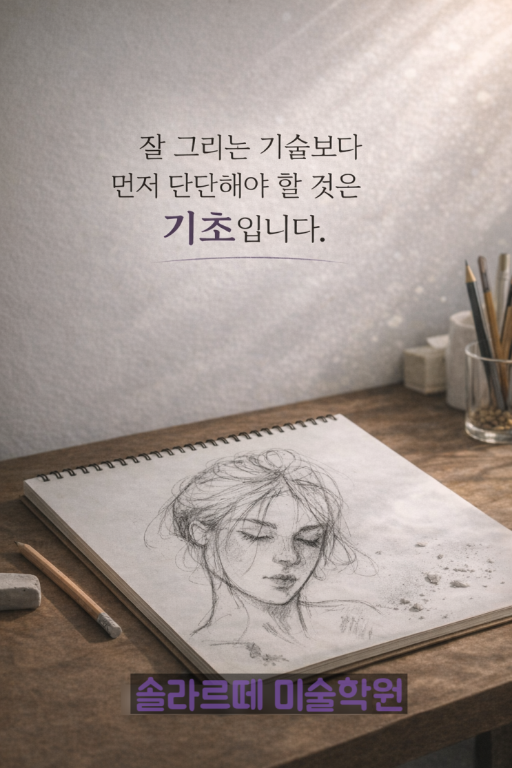 재능 문제가 아니라, 기초가 쌓이지 않은 경우가 많습니다. 3월, 새로운 학기를 앞두고 많은 아이들이 이렇게 말합니다. “나도 그림 잘 그리고 싶어.” 그 말속에는 단순한 욕심이 아니라 더 잘 표현하고 싶고, 지금보다 한 단계 성장하고 싶다는 아이의 진심이 담겨 있습니다. 그렇다면 정말 중요한 질문은 이것일지도 모릅니다. 잘 그리고 싶어 하는 아이에게, 지금 가장 필요한 건 무엇일까요? 손의 연습보다 먼저 필요한 것 학년이 올라갈수록 아이들의 생각은 분명 깊어집니다. 보고 느끼는 감정도 풍부해지고, 표현하고 싶은 이야기도 많아집니다. 하지만 어느 순간부터 아이들은 이런 벽에 부딪힙니다. “생각은 있는데, 손이 잘 안 따라....... <img src="https://blogthumb.pstatic.net/MjAyNjAyMTZfMjMy/MDAxNzcxMjM0MDgwNjg1.Boy9rS6In7OD5N5SPfqKtSPybciuPLCqxPV-YSjwrQAg.HL2SguEw8uTDcE82xif049oWWnbFmZBPcpQeIBVTq9Eg.PNG/ChatGPT_Image_2026%B3%E2_2%BF%F9_16%C0%CF_%BF%C0%C8%C4_06_20_55.png?type=s3" />