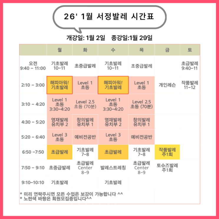 송파발레))서정발레 2026년 1월 스케줄입니다
