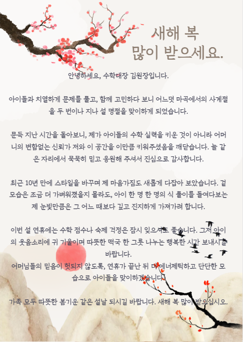 <마곡수학학원>"마음이 머무는 수학" 진심을 담아 전합니다. (설날 인사드려요^^)