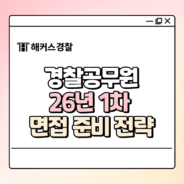 경찰 시험을 준비하다 보면 필기 이후 단계에서 가장 부담되는 것이 바로 경찰공무원 면접인데요. 특히 압박 질문이 나온다는 이야기를 들으면 어떻게 준비해야 할지 막막해지기 쉽습니다. 오늘은 실제 일정부터 준비 전략까지 한 번에 정리해드릴게요. 1. 26년 1차 경찰공무원 일정 → 필기 이후 체력·면접 일정까지 이어지는 흐름을 반드시 체크해야 합니다. → 특히 경찰공무원 면접 일정은 준비 기간이 짧기 때문에 미리 대비가 중요해요. 필기: 3월 14일(토) (종료) 체력: 3월 30일 ~ 4월 25일 면접: 5월 18일 ~ 6월 16일 최종합격 발표: 6월 19일(금) 필기 이후 약 한 달 정도 뒤에 바로 면접이 진행되기 때문에 체력 준비와 동시에 경찰공....... <img src="https://blogthumb.pstatic.net/MjAyNjA0MDJfMjU2/MDAxNzc1MDkwNzA1OTY3.DyJghB2vUHS88EgKw-6G8rZC1DWd0E5q5eXzMWsLBnUg.6VzOYcTccqVxlsAZ0JjtGFuWLoLSFsfyD2K6ljbau-8g.PNG/%B9%DA%BC%F6%BE%C6_%BD%E6%B3%D7%C0%CF_-_2026-04-02T094427.102.png?type=s3" />