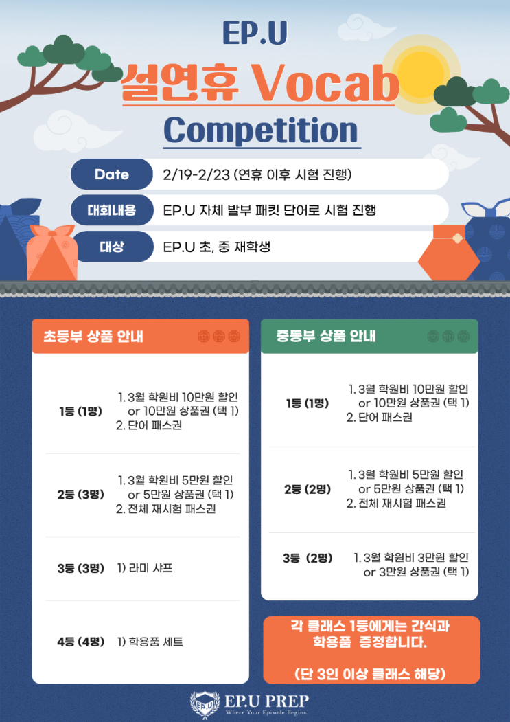 <이피유영어학원> 설연휴 vocabulary competition 초등/ 중등 단어패킷 안내