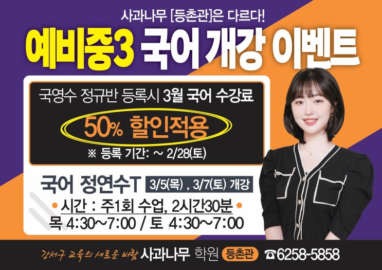 [등촌관] “고1 성적은 중3에서 갈립니다|사과나무 등촌관 국영수 연계 + 국어 개강 이벤트”