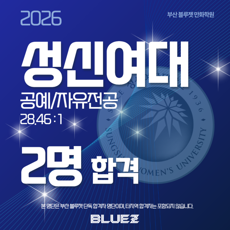 [부산 애니학원] 성신여대 공예/자유전공 2명 합격(28.46:1)|부산 블루젯 만화학원