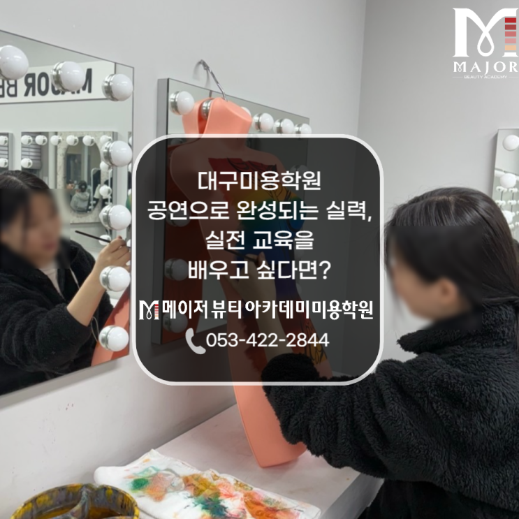 대구미용학원 공연으로 완성되는 실력, 실전 교육을 배우고 싶다면? 안녕하세요. 대구미용학원 메이저뷰티아카데미미용학원입니다~ 이제 다음 주면 설날이 다가오는데요. 가족들과 따뜻한 시간을 보내며 재충전하는 시기이지만 저희 대구미용학원의 수강생들은 명절의 설렘 속에서도 각자의 목표를 향해 꾸준히 준비하고 있습니다. 명절이 지나고 나면 바로 어린이 뮤지컬 공연 일정이 이어지기 때문인데요. 무대는 날짜를 기다려주지 않기에 수강생들은 하루도 빠짐없이 매일 연습에 매진하고 있습니다. 대구미용학원은 헤어 전공이라도 메이크업이 가능하도록, 메이크업 전공이라도 헤어를 충분히 소화할 수 있도록 서로의 영역을 넘나드는 연....... <img src="https://blogthumb.pstatic.net/MjAyNjAyMTNfMTE0/MDAxNzcwOTY5MTAwNTEy.WT2GHLJbKKFDriierQdzTRq6ttttOCKW8xg3yBgP4zgg.jrnBYjr0GfUeOCU0LxLrVMZ2sYwIL6lPZIiNbBDEZhYg.PNG/%BA%ED%B7%CE%B1%D7-003_%281%29.png?type=s3" />