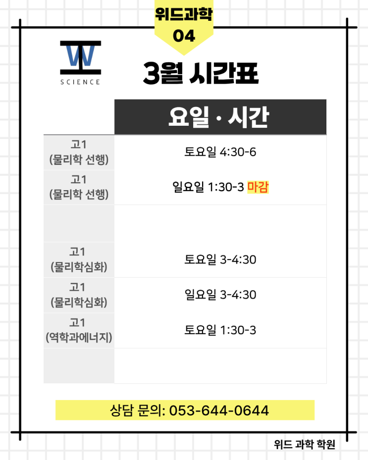 **<<3월 시간표(26년)>>**중1~고3(2/8업데이트)ㅣ달서구과학학원ㅣ상인동 과학ㅣ월성동 과학 ㅣ위드과학