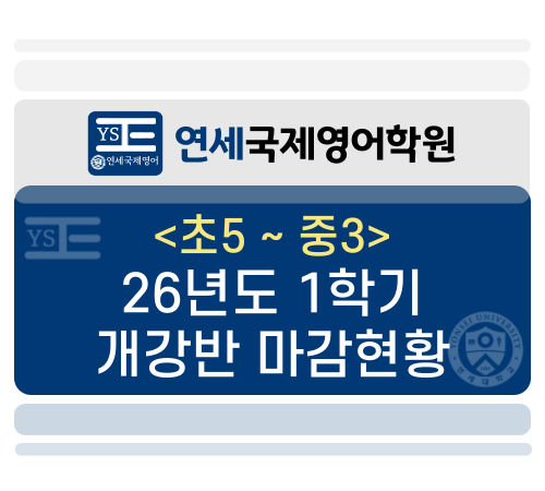 [연세국제영어/세종영어학원] 새학년(26년 3월) 개강반 마감현황(초5 ~ 중3)