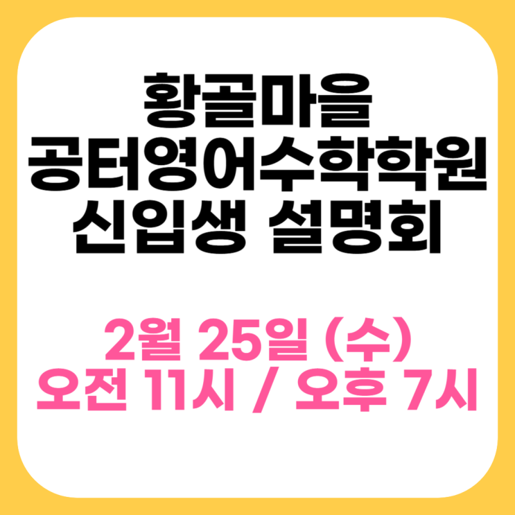 황골마을 공터영어수학학원 신입생설명회 2월 25일 11시 7시