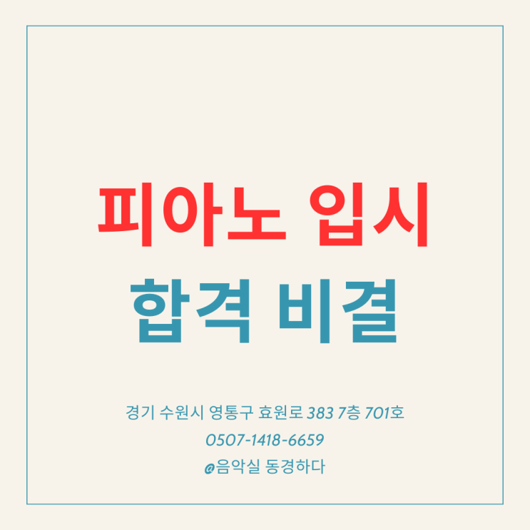 수원에서 피아노 입시를 준비한다면 무엇을 가장 먼저 확인해야 할까요? 합격 숫자보다 더 중요한 것은 학생을 어떻게 관리하는가입니다. 수원피아노입시학원을 찾는 학부모님들이 가장 많이 질문하시는 부분도 바로 이것입니다. “연습은 어떻게 관리하나요?” “수업 외 시간은 어떻게 점검하나요?” “학생의 부족한 부분을 어떻게 보완하나요?” 입시는 단순 레슨이 아니라 장기적인 관리 과정입니다. 수원 피아노 입시, 왜 관리가 중요한가 피아노 입시는 곡 완성도뿐 아니라 리듬 안정성 터치 밸런스 페달 컨트롤 프레이징 이해 무대 대응력 까지 모두 평가됩니다. 따라서 수업 시간만 잘하는 것으로는 부족합니다. 저희는 매 수업 후 구체....... <img src="https://blogthumb.pstatic.net/MjAyNjAyMTRfOTkg/MDAxNzcxMDUwMzc5ODI5.uU2OY6ktvmfua-IV_mTxOLc4mynceYFR74an5FhJZ48g.aNjYfSzL2XcvES-RGjvmX7JmMAOiGX1GxUuTIUNR520g.PNG/%BC%BA%C0%CE%C7%C7%BE%C6%B3%EB%C7%D5%B0%DD%BA%F1%B0%E1.png?type=s3" />