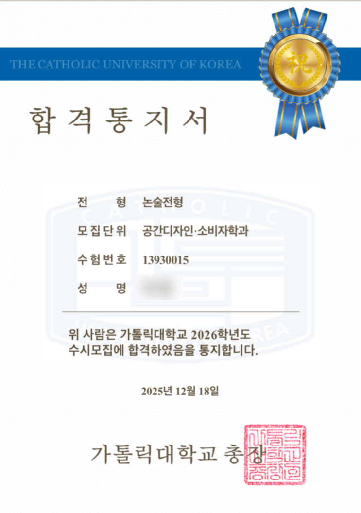 학부모님, 이 이야기 믿으시겠어요? 작년 여름, 수학 모의고사 4등급 학생이 저를 찾아왔습니다. 내신도 별로고, 수능도 안 오르고, 부모님과 아이 모두 "인서울은 이미 끝났다"며 포기하려던 순간이었죠. 그런데 이 학생이 2024년 수시에서 가톨릭대학교 수리논술로 당당히 합격했습니다. 수능 점수로도 아닌, 내신으로도 아닌, 오로지 논술 하나로요. 어떻게 가능했을까요? 2026년 수리논술 개별지도반 오픈 수원 지역 유일 수리논술 전문 개별 지도 20년간 입시 컨설팅 경험과 실제 수리논술 합격 노하우를 바탕으로 2026학년도 수리논술 개별지도반을 새롭게 오픈합니다. 이런 학생에게 딱 맞습니다: ✅ 수능 성적은 부족하지만 수....... <img src="https://blogthumb.pstatic.net/MjAyNjAyMThfMTMy/MDAxNzcxNDAwNTA5MTE1.3ueQ4GypxlVaShfGlomvfCwctb9bThQepS8hw-6NVjog.jH4vD0RrXZruBn1aaurMlGBzIpuJ2PKNB1l4WvDwXPEg.PNG/KakaoTalk_20251218_153312519.png?type=s3" />