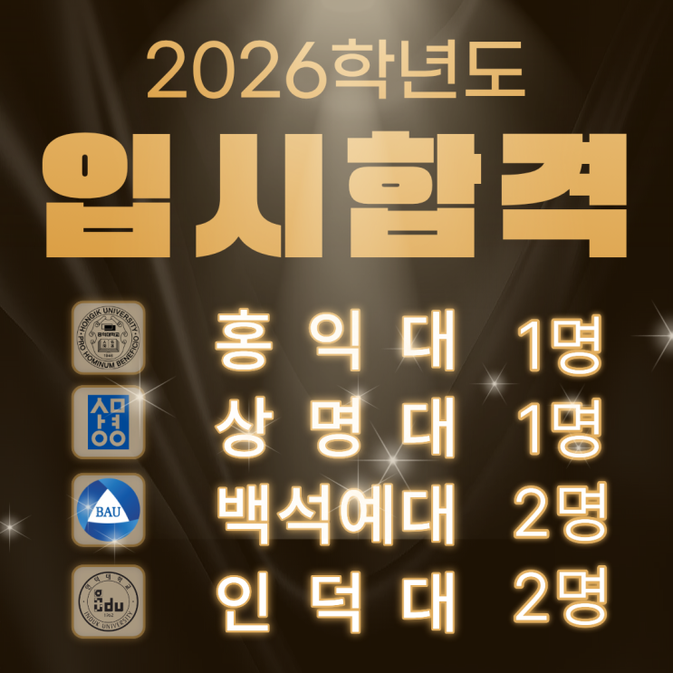2026학년도 입시 결과 2026년 광교애니톡 학생들이 이루어낸 값진 결과를 공유합니다. 실력은 기본에서 시작합니다. 기초를 단단히 다지고, 학생 개개인의 강점을 전략적으로 분석하며 준비해 온 시간들이 올해도 의미 있는 결실로 이어졌습니다. 합격이라는 결과는 하루아침에 만들어지지 않습니다. 꾸준함과 방향성이 만나 완성됩니다. 합격한 모든 학생들에게 진심으로 축하를 전하며, 저희 광교애니톡을 믿고 함께해 주신 학부모님들께 깊이 감사드립니다. 앞으로도 보내주신 신뢰에 최고의 결과로 답하겠습니다. 감사합니다. 애니, 웹툰, 만화 입시는 광교 애니톡에서 준비하세요 :) 고민이 되신다면 상담받아보신 후 결정하셔도....... <img src="https://blogthumb.pstatic.net/MjAyNjAyMjdfNjAg/MDAxNzcyMTc0MzM0Njk3.Yoaoyf7Tqh-yuqEjD1KpKNeryVtn7iU774-JcF0B9gUg.fn0ofCOoT9wfAFxEbNFtb_UKV0GsYHycS83akWSHlr0g.PNG/%EB%B8%94%EB%A1%9C%EA%B7%3F_%3F%8D%B8%3F%84%AC_%281%29.png?type=s3" />