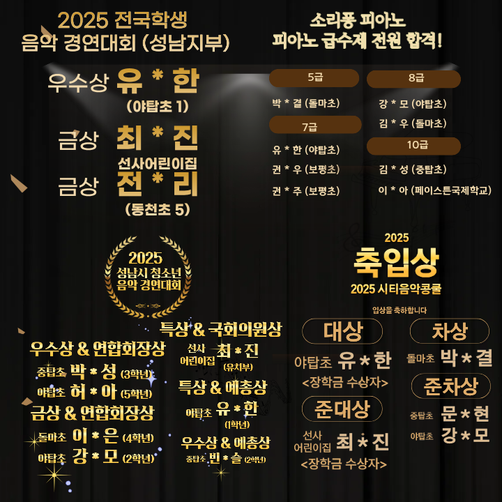 야탑동 피아노 잘 가르치는 음악학원 소리퐁 피아노 2025 수상 총정리