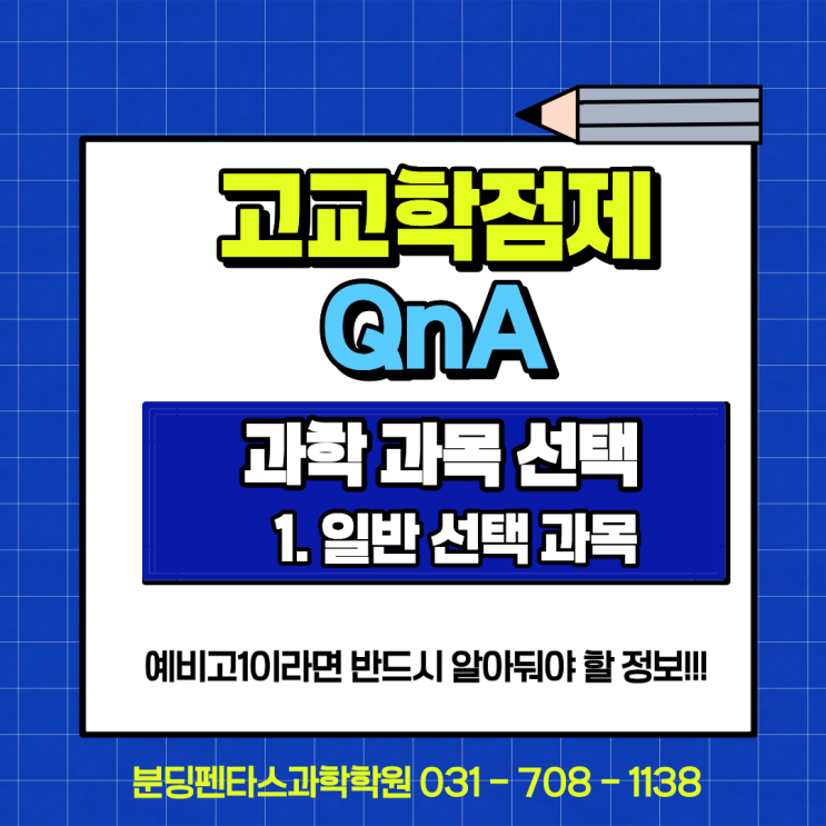 고등학교 입학을 앞둔 예비고1 학생들은 고교학점제라는 말을 들어봤을 것입니다. 중학교와 다르게 학생들이 직접 원하는 과목을 선택해야 하는 고교학점제에서는 과목을 선택하는 것이 중요하다는 것도요. 이런 이유로 분당지역 고등학교에서는 1학년 1학기부터 학생들에게 고교학점제 및 2학년에서 선택할 과목들을 홍보하고 사전에 선택할 과목들을 조사하기도 합니다. 이렇게 과목선택이 중요한 이유는 무엇일까요? 고교학점제의 과목 선택, 진로와 내신성적까지 함께 고민해야 분당과학학원인 펜타스과학학원이 굳이 답하지 않아도 학생들이 잘 알고 있을텐데요. 그 이유는 과목선택이 그대로 대입과 연결되기 때문입니다. 그뿐만이 아니지....... <img src="https://blogthumb.pstatic.net/MjAyNjAxMjNfMTQ3/MDAxNzY5MTU4NDAzNDg4.fCFbo-2zEzEO1Ba-f01Ie9uTzOlVD2OH_yZ0Epce1JUg.jd5oRxK1g-lAmI8cXaNXqop1g5IRfvZBi6Nu5_6kfuAg.PNG/%C1%A6%B8%F1%C0%BB_%C0%D4%B7%C2%C7%D8%C1%D6%BC%BC%BF%E4._-_2026-01-23T174354.575.png?type=s3" />