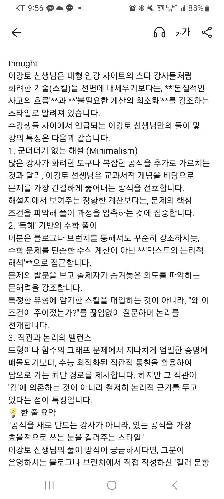 어제 30년만에 대학교 친구들을 미금역애쉴리에서 저녁 7시에 만났다 학원강사하면 야간에 수업을 하니 친구들을 만날수가 없었다 친구들은 대기업을 아직도 다니고 있는 친구와 올해 퇴직한 친구도 있었다 나는 삼성에 취직되었는데도 취직안하고 목동청솔강사부터 시작해서 방배본동에서 10년 학원운영도 하고 메가스터디 스카이에듀 종로학원을 거쳐서 지금 미금역에서 수학교습소를 하고 있는데 방학이고 지금이 가장 시간적 여유가 있어서 30년만에 친구들을 만났는데 너무 기분이 좋았다 근데 나에 대해서 알아보겠다고 친구가 구글 제미나이에서 나온 저의 이야기를 친구가 보여주었는데 깜놀이었다 저에 대해서 명확하게 설명이 되어있어....... <img src="https://blogthumb.pstatic.net/MjAyNjAyMjVfMTcw/MDAxNzcxOTcyMjI4MjE1.339FyVAn0CcXLXLA6rtAEQ2RDfzHLNE4YbS0kG2sBTog.hXLA7eN1yWTJ3A3dtDvbzpXUFbAfJF_-CZgQ-BbyvH8g.JPEG/Screenshot%A3%DF20260224%A3%DF215606%A3%DFKakaoTalk.jpg?type=s3" />