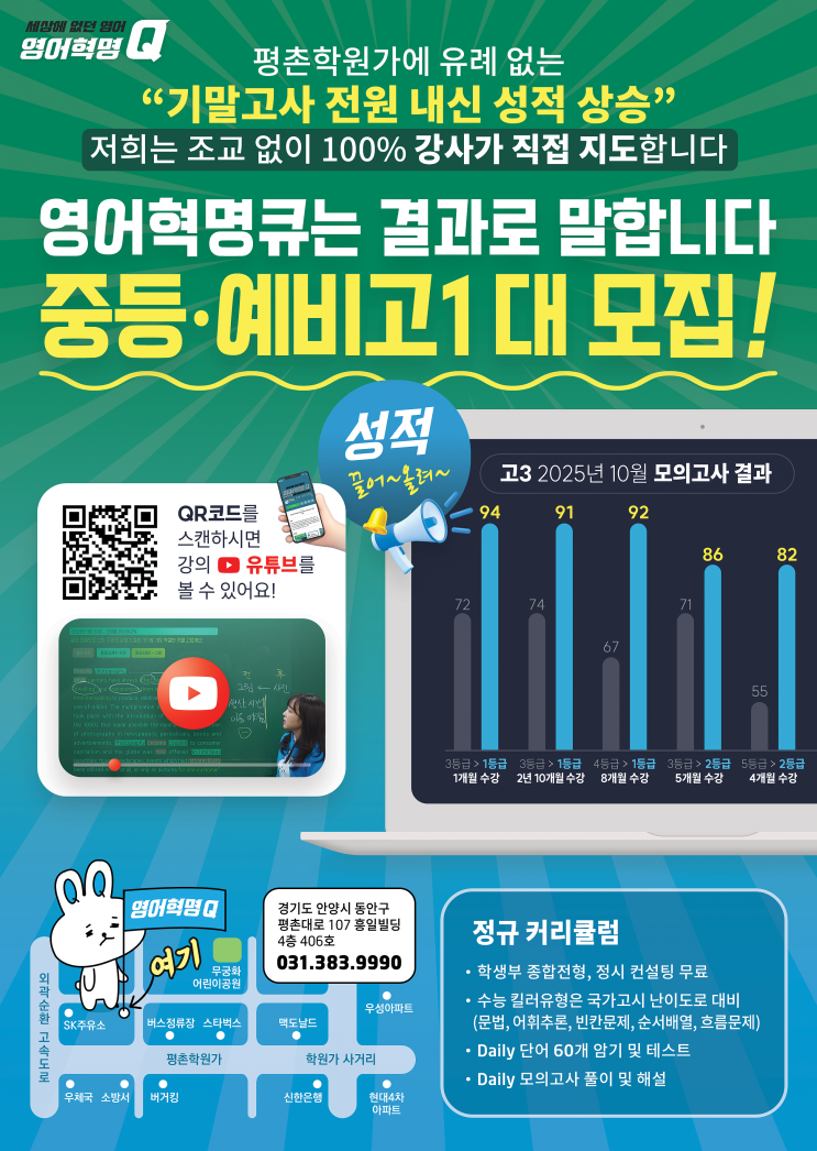 [26'영큐봄학기개강]평촌 영어 내신·수능, 결과로 증명하는 영어혁명Q