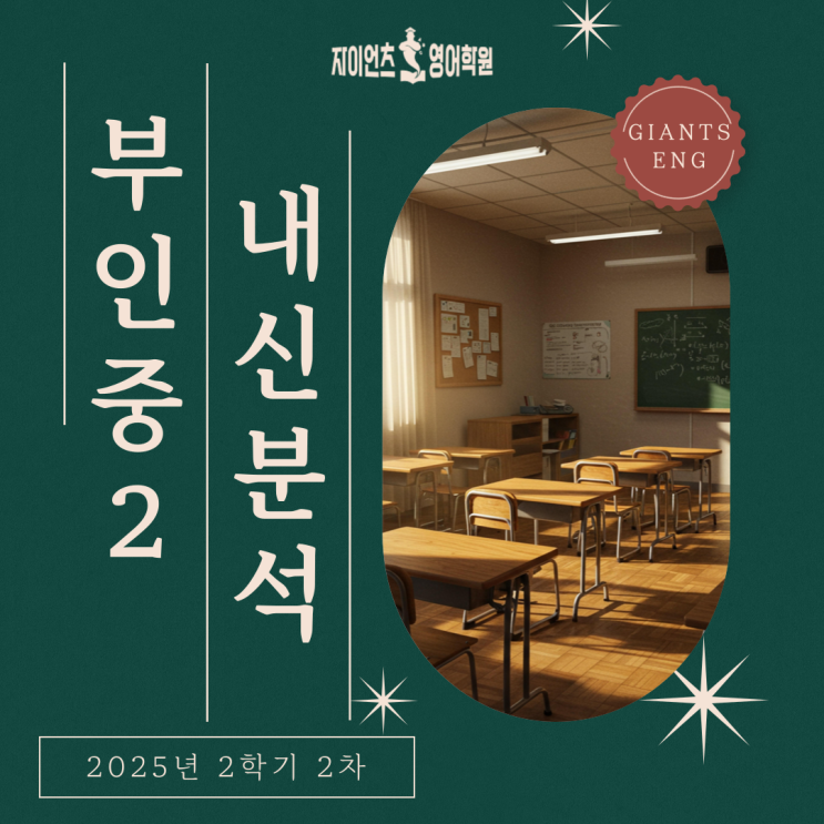 안녕하세요! 부천 상동 영어학원, 부인중 영어 내신 전문 자이언츠 영어학원 입니다. 오늘은 25년도 2학기 기말고사 부인중 영어 시험 분석 포스팅입니다. 이번 부인중 기말고사 영어 시험은 전반적으로 평이한 난이도였습니다. 문제 난이도 자체도 무난했고, 학생들이 실수할 법한 유형의 문제가 적어서 많은 학생들이 점수 상향을 볼 수 있었을 텐데요. 그만큼 이번 시험에서 오답이 나왔다면 어떤 부분이 부족한지 명확히 보이기도 하기 때문에, 복기하는 과정이 꼭 필요합니다. 부인중 영어 전문 자이언츠영어학원은 다년간의 학원 운영과 양질의 수업을 병행하여, 부인중 영어 내신에 대해 깊은 노하우와 전문성을 가집니다. 자이언츠에서 분....... <img src="https://blogthumb.pstatic.net/MjAyNTEyMjRfMTUg/MDAxNzY2NTczMjg3NTM3.856lCXQ9AQymZCXPtAbX_vU4VJZMqrF2xFaBcNam9I8g.ujhoWN8n-9ppaDUWcTYQfSs3wY92ETAAUqXWzVYpnBUg.PNG/001.png?type=s3" />