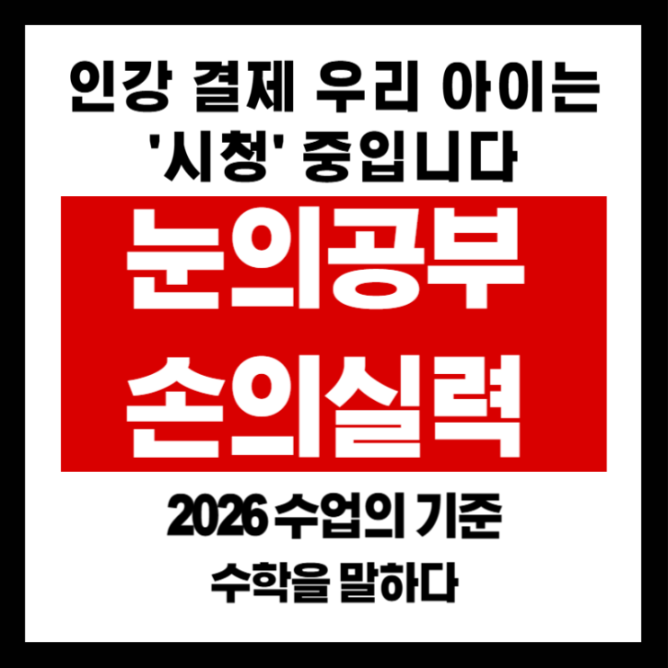 개학이 코앞으로 다가왔습니다. 방학 초에 야심 차게 결제해 준 인강 패스, 우리 아이는 얼마나 들었나요? 지금 아이 책상 위 수학 문제집을 한번 확인해 보세요. 절반도 못 나갔거나, 앞부분만 깨작거린 흔적뿐이라면 지난 한 달간 아이는 공부가 아니라 '인강 쇼핑'만 한 겁니다. 수학은 눈으로 구경하는 과목이 아닙니다. 1타 강사가 술술 푸는 걸 멍하니 보고 있으면 나도 다 안다는 착각에 빠지기 딱 좋거든요. 귀는 즐겁지만 손은 멈춰 있는 상태, 이게 인강의 가장 무서운 함정입니다. 인강이 아무리 훌륭해도 절대 채워주지 못하는 '구멍'이 있습니다. 아이가 어느 줄에서 계산이 꼬였는지, 왜 굳이 이 풀이법을 선....... <img src="https://blogthumb.pstatic.net/MjAyNjAyMjNfMTEw/MDAxNzcxODU2MzkwODQ4.VRKSQ8zgvPD26BtuGIfVzH4Hp7sJDOmpUKdKHynUoc4g.ij4iOEjGM_1Pd3f80ZjOE_yLVNyhOcGwDcJGDUEdu-Ig.PNG/%C1%A6%B8%F1%C0%BB_%C0%D4%B7%C2%C7%D8%C1%D6%BC%BC%BF%E4_-001.png?type=s3" />