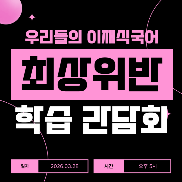 이재식국어 ] 3월 28일 '중등 최상위반 간담회'에 학부모님을 초대합니다!