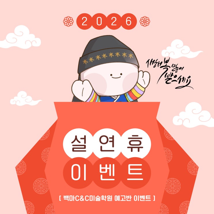 안녕하세요 백마C&C미술학원 예고반입니다.^^ 모두 설 연휴 알차게 보내셨나요? 오랜만에 가족/친지분들과 함께 모여 맛있는 음식도 먹으며 행복한 시간을 보내셨을 거 같은데요~ 백마C&C미술학원 예고반 학생들이 매년 진행하고 있는 설날 과제 이벤트를 소개해 드리고 자 합니다. 기나긴 연휴에도 그림에 대한 열정이 식지 않도록! 손이 굳지 않도록! 항상 드로잉 과제가 아이들에게 나가고 있는데요~ 예고반 선생님이 직접 제작한 드로잉 학습지와 소묘 카피 과제에 1일 1인증샷까지 연휴에도 바쁜 예고반 친구들이에요~ 학습지 또한 미리 이렇게 예시작을 만들어 어떻게 진행하는지를 아이들에게 공지를 해주면서 꼼꼼하게 그려올 수....... <img src="https://blogthumb.pstatic.net/MjAyNjAyMjVfMTEw/MDAxNzcyMDMwNDM0NzI1.UxKXx-KNWtLcbJ_qQJAiYukjDrg-PSmHEy_oxzUtqVgg.IHiF88DsIksiEvAT9L4cvRcoN6Gpsd-mrEyFd0DAtXgg.JPEG/%C1%A6%B8%F1%C0%BB-%C0%D4%B7%C2%C7%D8%C1%D6%BC%BC%BF%E4_-001_-_2026-02-14T164300.542.jpg?type=s3" />