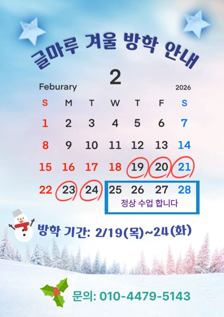 [글마루 겨울방학 안내] 2/19(목)~2/24(화)