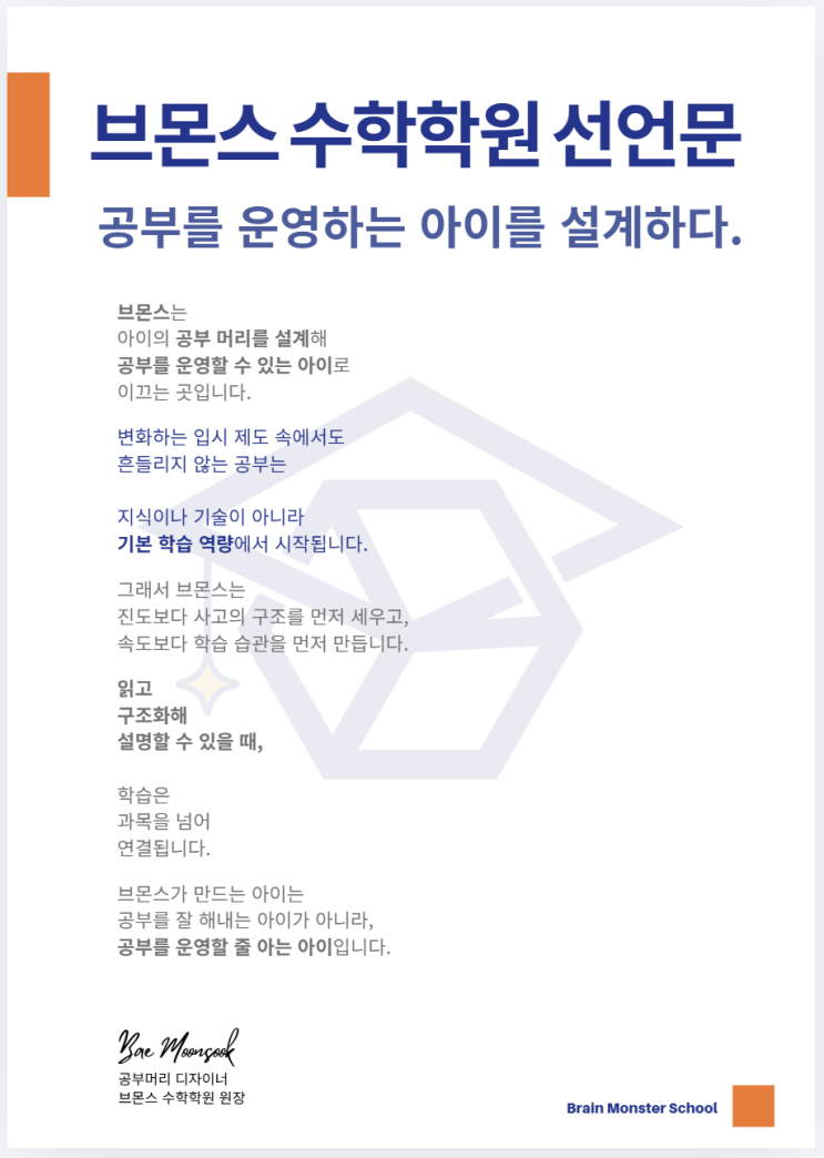 브몬스 수학학원 선언문