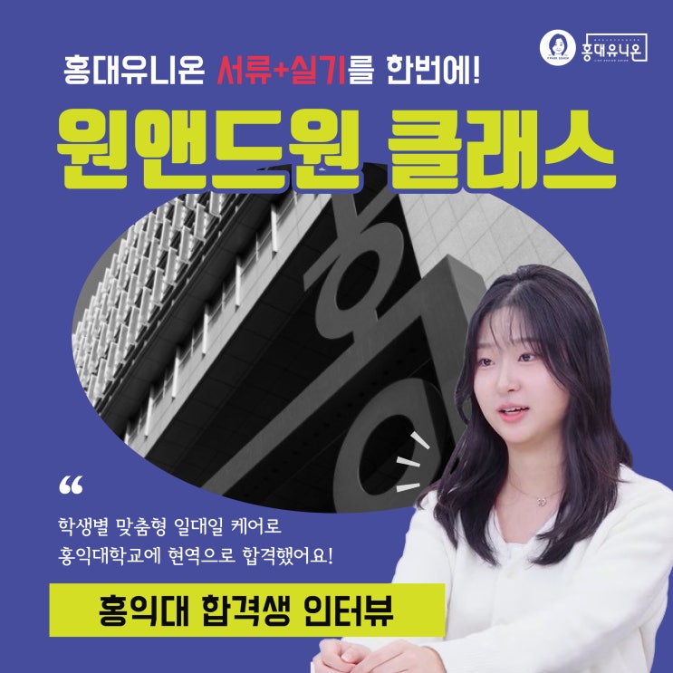 [원앤드원 클래스] 홍익대학교 고3 현역 합격 비결!/ 미대입시 서류+실기+면접 수시 상위권학교 완벽 대비/ 홍대미술학원유니온만의 올케어시스템/ 홍대미대/ 홍대면접/ 미대수시
