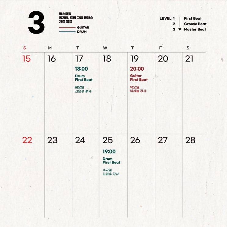 26년 3월 [통기타 & 드럼 그룹레슨] 개강 일정