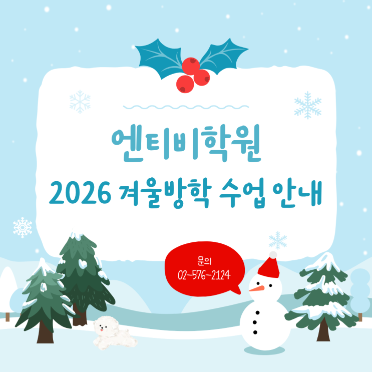 [엔티비학원 겨울방학 휴강 및 수업 안내] 개포동수학 / 개포동영어 / 김순복국어논술학원 / 포이초영수 / 구룡초영수 / 대치중영수 / 구룡중영수