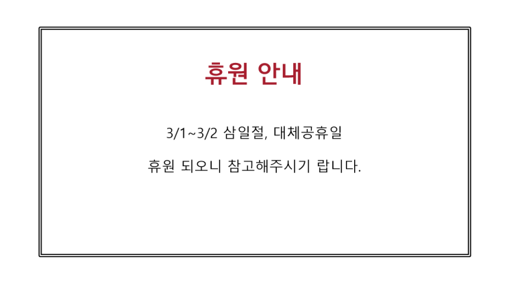 설날 연휴 동안 가족들과 따뜻한 시간 보내시고, 편안한 마음으로 연휴 이후 우리 친구들 수업에서 다시 만날게요. 설날 연휴 휴강 일정 안내 ✔ 휴강일 2월 16일(월) ~ 2월 18일(수) 설날 연휴로 휴강입니다. ✔ 정상수업 2월 19일(목)부터 정상 수업 진행합니다. <img src="https://blogthumb.pstatic.net/MjAyNjAyMTBfMTI3/MDAxNzcwNzE1MjYwNDM0.0ecF6ccFjs5URkVnFX6LHUIruqAxADmeYMCqJfO3gKQg.Ckm_G-S2Tmh6LTS11svu_vx6ICjWD75zACxheKvMo98g.PNG/2026%BC%B3%BF%AC%C8%C4.png?type=s3" />