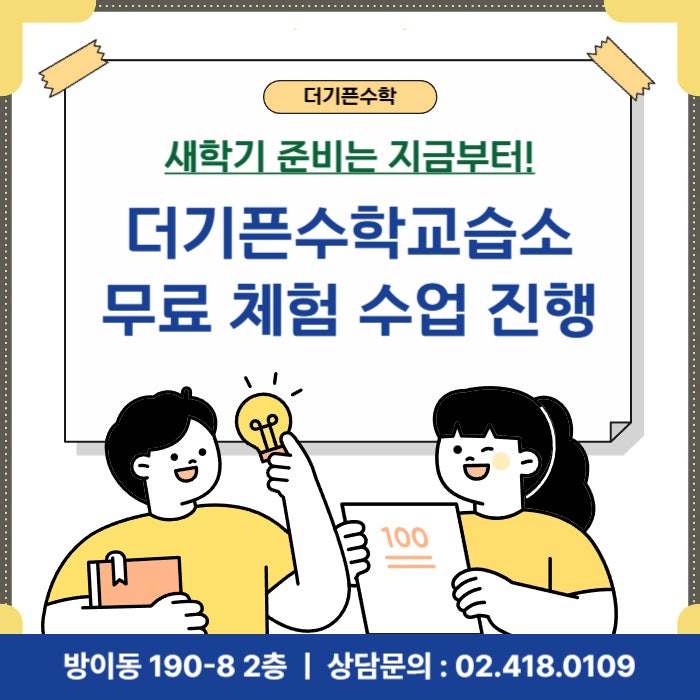 방이역수학 - 새학기 준비는 지금부터! 더기픈수학 무료 체험 수업 진행