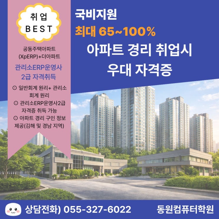 ["김해 동원컴퓨터학원"] 관리소 ERP운영사 2급 아파트 취업시 우대 자격증!!#중장년 우대