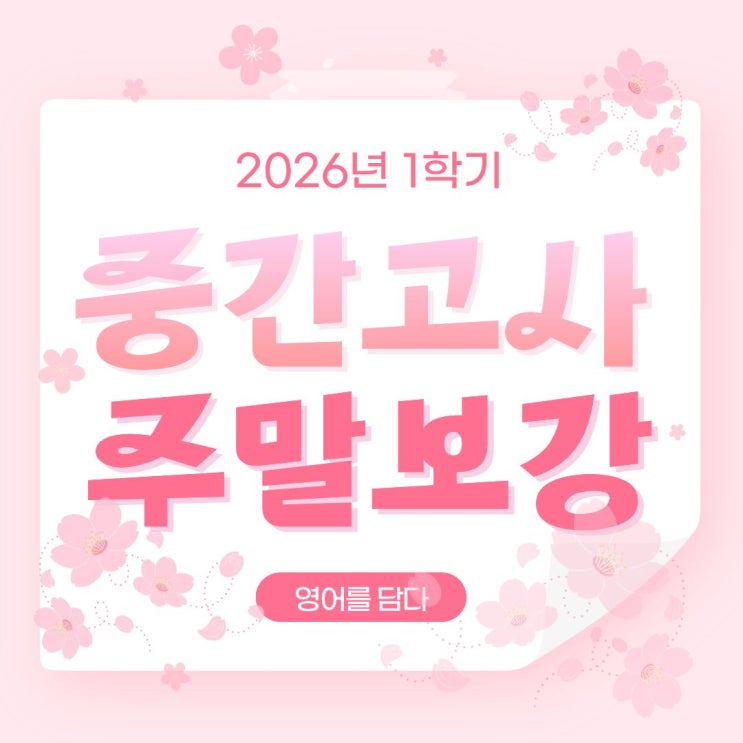 안녕하세요 영어를 담다 원장 전재석입니다. 새학기가 시작한지 엊그제 같은데 벌써 중간고사가 다가왔습니다. 1학기 첫시험이라 모든 학생들이 긴장감속에서 공부를 하고 있습니다. 첫단추를 잘 채우기 위해 영담에서도 열심히 시험대비를 하고 있습니다. 오늘은 고등부 중간고사 보강 스케쥴을 안내하려 글을 씁니다. 고등부는 현재 교과서는 1회독 이상을 하였으며, 부교재도 절반 정도의 진도가 나갔습니다. 올해 모의고사도 오늘이면 1회독이 끝나겠네요 시험대비가 순차적으로 진행되고 있으며, 이번주에 학생들의 상태를 점검하는 보강이 있습니다. 아래는 주말 보강1차 스케쥴입니다. 재원생들에게 미리 공지가 되었지만, 한번 더 공지를....... <img src="https://blogthumb.pstatic.net/MjAyNjA0MDNfMjgy/MDAxNzc1MjIyMTA5MjAw.0m2VLztlKtSkG20tGRtIDatfBrOrhsldafC0iPogIxog.uFByau2zYj5t3gdwuwZ6-u_gYWuqdPMzgVQMbcYixm0g.JPEG/%C1%A6%B8%F1%C0%BB_%C0%D4%B7%C2%C7%D8%C1%D6%BC%BC%BF%E4._%2844%29.jpg?type=s3" />