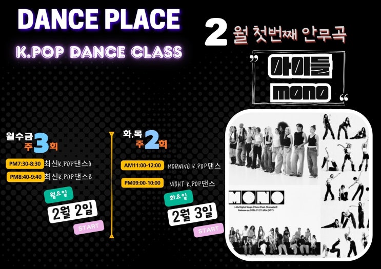 『대구댄스학원』대구칠곡3지구댄스학원 댄스플레이스 방송댄스 성인취미반 2월 첫번째 안무곡 (여자)아이들-MONO