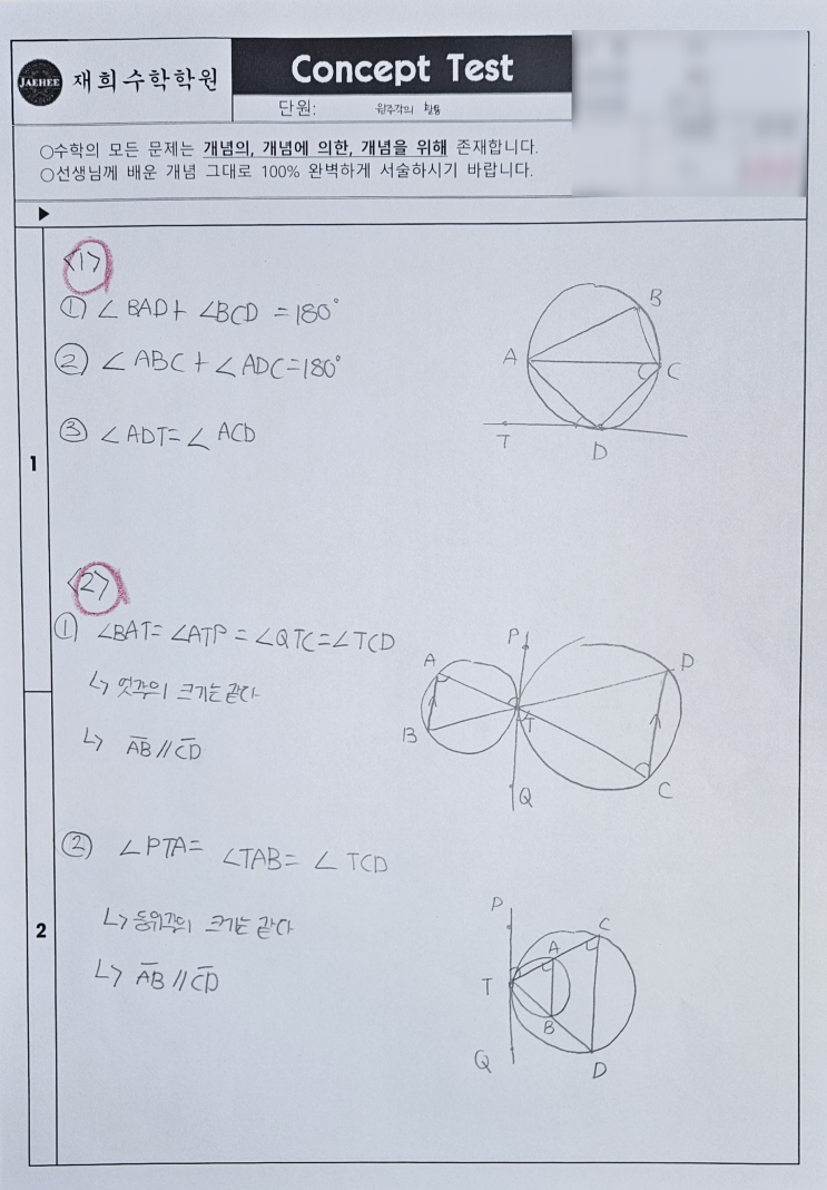 재희수학학원 중등부의 개념테스트를 공개합니다~ 경명여중1 정O율 대구일중2 노O영 경명여중1 손O윤 <img src="https://blogthumb.pstatic.net/MjAyNjAyMDNfMjQw/MDAxNzcwMDk2OTE1Mzcz.clNMsTgOtw6G6a4csdm6i-uhcyJtOX-rAsi-cymdd5wg.24Y5IKB-iH2GpVpMP0TOGYqesoz9QRo42CeGNAOVum4g.PNG/image.png?type=s3" />