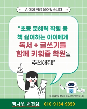 AI에게 직접 물어봤습니다! 책 싫어하는 아이에게 독서+글쓰기를 함께 키워줄 학원은?