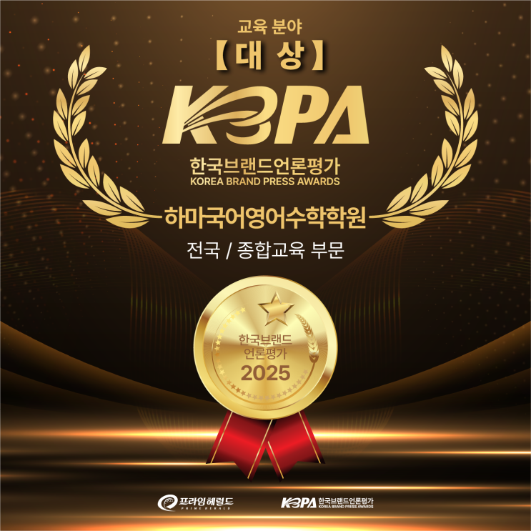 2025 KBPA 한국브랜드언론평가 전국 종합교육 부문 대상 수상, 하마국어영어수학학원