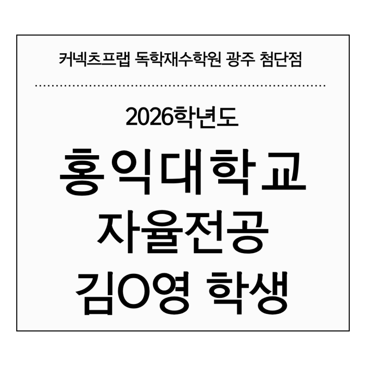 [2026학년도 홍익대학교 자율전공 김O영 학생 커넥츠프랩 광주 첨단 독학재수학원]