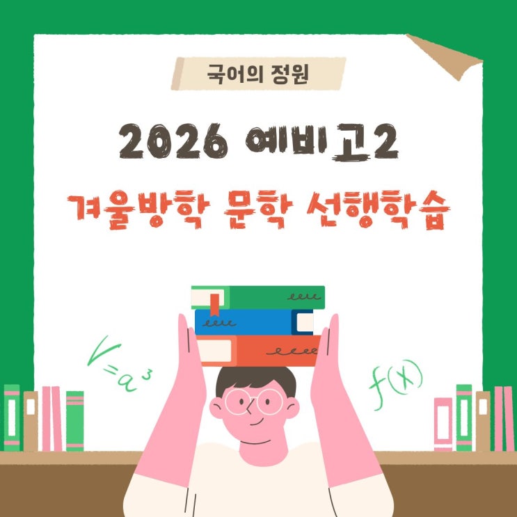 안녕하세요, 학부모님 그리고 학생 여러분! '국어의 정원'입니다. 어느덧 따뜻한 차 한 잔이 생각나는 겨울이 찾아왔습니다. 한 해를 마무리하는 설렘과 함께, 새로운 학년을 준비해야 하는 중요한 시점이기도 하죠. 차가운 바람에 옷깃을 여미게 되는 계절이지만, 우리 국어의 정원 학생들의 열정만큼은 교실 안을 훈훈하게 채우고 있습니다. 오늘은 변화하는 입시 환경 속에서 우리 아이들이 흔들림 없이 국어 성적을 잡을 수 있는 '2026 예비고2 문학 선행 수업' 소식을 전해드립니다. 내년부터 적용되는 새로운 문학 교과서에 맞춰 발 빠르게 움직여야 합니다. 저희 학원에서는 개정된 교과서 목차를 철저히 분석하여 핵....... <img src="https://blogthumb.pstatic.net/MjAyNTEyMjRfMTcg/MDAxNzY2NTU2MzM2MDg0.c3-VwsCh2aUNebOb-_V3hUoU8KM_-k4nlfBi0VDhtAog.rWCLebRHAWvqc3YAIFb8lqK2uJ0XbDnV1jmVN9bkPUog.JPEG/%C1%A6%B8%F1%C0%BB_%C0%D4%B7%C2%C7%D8%C1%D6%BC%BC%BF%E4..jpg?type=s3" />