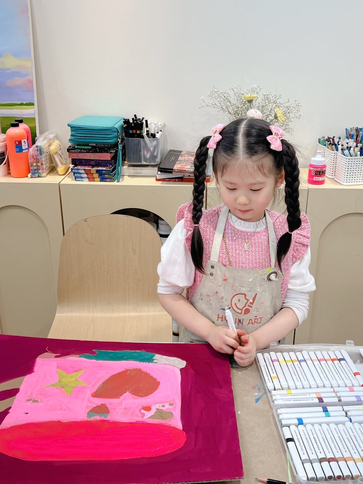 안녕하세요 현아트미술학원입니다~ 이번수업에서는 <자이언트 티컵>을 주제로 커다란 티컵과 찻잔을 상상하며 나만의 티타임을 작품으로 표현해보았는데요~☕️ 아이들은 먼저 큰 티컵의 형태를 그리며 둥근 곡선과 컵의 구조를 살펴보고, 다양한 색과 패턴을 그려보며 나만의 개성있는 티컵을 디자인해보았습니다 또 컵 주변에는 케이크, 마카롱, 쿠키 등 달콤한 디저트를 함께 그려 넣으며 화면을 더욱 풍성하게 채워보았습니다 1주차에는 아크릴 물감을 사용해 큰 형태를 시원하게 표현하며 물감의 질감을 경험해보는 시간이었습니다~ 넓은 화면에 과감하게 색을 채워보며 아이들의 표현력과 자신감을 키워볼 수 있었....... <img src="https://blogthumb.pstatic.net/MjAyNjAzMTZfOTEg/MDAxNzczNjUyNzc2MTMz.yRUw98NSPIGuDui1a0n3FP_JZ99CrcJaX3uMxSGpCXUg.TXXKNPGylMuXdy4rraAQO9AjHp-Cc_XPMFiz2-9iK1cg.JPEG/KakaoTalk_Photo_2026-03-16-18-17-59_001.jpeg?type=s3" />