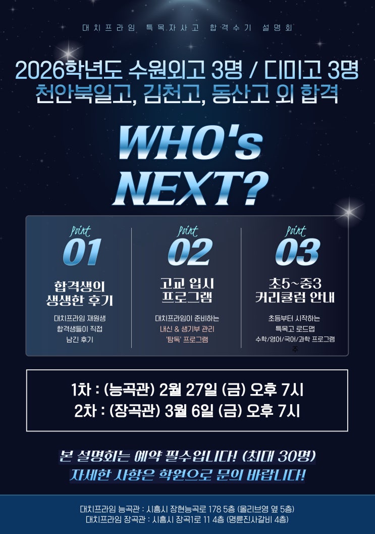 대치프라임학원 (능곡관) / 대치프라임장곡학원 (장곡관) 특목고 자사고 외고 합격수기 설명회