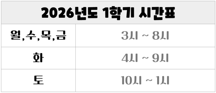 2026년 수업 시간 안내