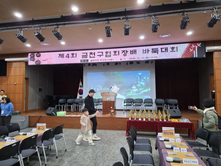 안녕하세요! 경기광주 플러스 바둑학원입니다. 벌써 2025년의 마지막 주인데요. 남은 기간 마무리 잘하시고 새해 복 많이 받으세요! 오늘은 지난 12월 14일 금천구청 대강당에서 진행되었던 제4회 금천구 협회장배 바둑대회 소식을 가지고 왔습니다. 대회 요강 먼저 보시겠습니다. 경기광주 바둑학원에서는 2명의 학생이 참가했습니다. 경기광주 학생들 결과는 어떻게 되었을까요? ○● 학생 A조 3위 홍주영 ○● ●○ 학생 유단자부 은상(8강) 염우빈 ●○ 출전한 학생 모두 좋은 성적을 거두었습니다! 축하합니다 ^^ 경기광주 플러스 바둑학원에서는 바둑을 처음 접하는 학생부터 바둑 선수를 꿈꾸는 학생까지 학생 수준에 맞는 즐거운 바둑 수....... <img src="https://blogthumb.pstatic.net/MjAyNTEyMjRfMTQ3/MDAxNzY2NTYyMDMzOTQw.20fZY-4xEX_2q9OOP8n0hsgTGuAzp1SR-W7HttIJSNIg.r4G8JvNki-qkVvgbW1AIbQLRl1IYuj1FbZwICt0OvZwg.JPEG/KakaoTalk_20251224_163231126.jpg?type=s3" />