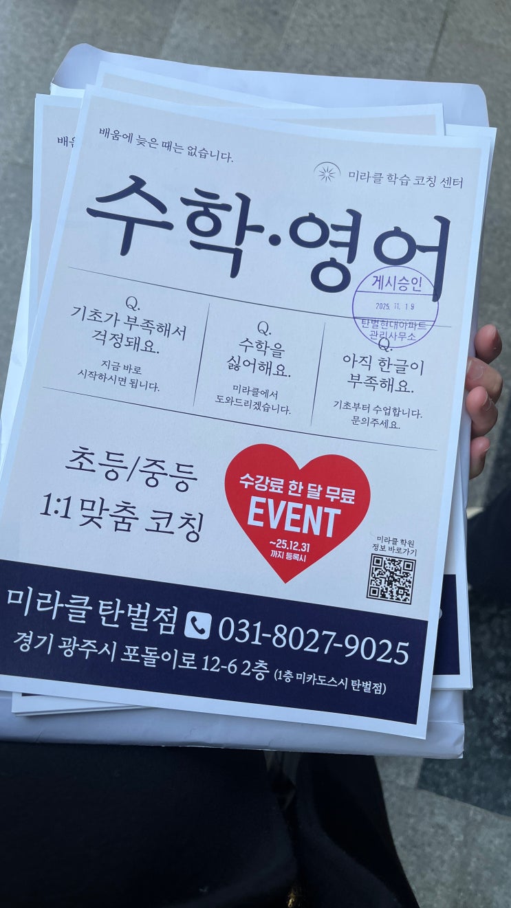경기광주 퇴촌, 탄벌동 수학학원_미라클 학습코칭학원_[도수초, 탄벌초, 경안초]