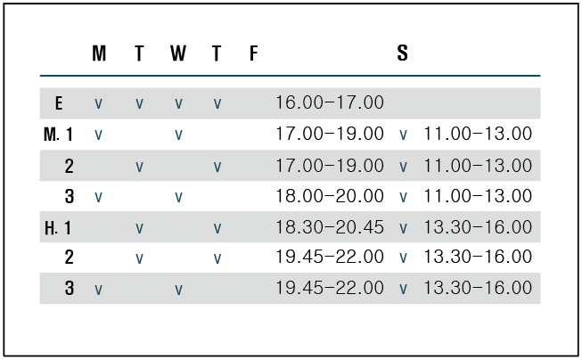 수업 시간표 안내(2026년 1월~)/오프라인,온라인
