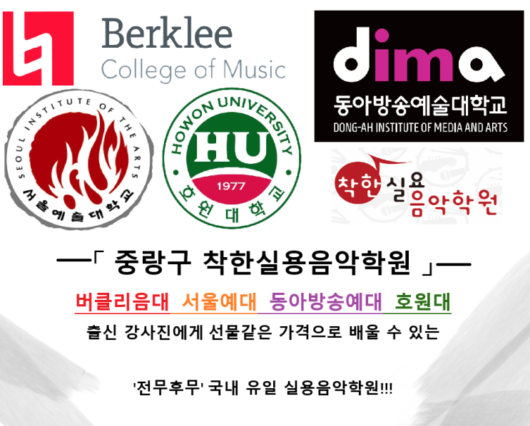 『중랑구 착한실용음악학원』버클리음대 / 서울예대 / 동아방송예대 / 호원대 출신 강사진