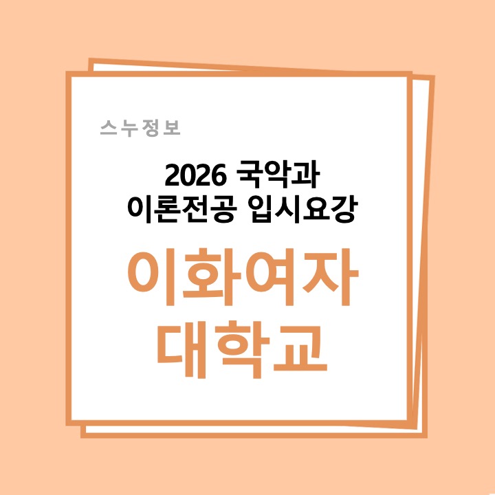 설을 지나며 스누국악은 새해의 기운으로 더욱 활기를 띠고 있습니다. ✨ 한 해를 마무리하고 새해를 맞이하는 이 시기, 연습실 한켠에 걸린 달력도 어느덧 새로운 해로 바뀌었네요. 떡국 한 그릇에 나이를 더하며 지난 시간을 돌아보고, 또 새로운 목표를 다짐해봅니다. 작년 이맘때 입시를 준비하던 친구들은 이제 각자의 자리에서 새로운 시작을 하고 있고, 새롭게 함께하게 된 학생들과는 올해의 목표를 차근차근 세우며 다가올 입시를 준비하고 있습니다. 이렇게 새해를 맞아 마음을 다잡으며, 2026학년도 입시요강도 하나씩 정리해보려 합니다. 오늘은 그 중 2026학년도 입시요강 중 '이화여자대학교' 국악이론전....... <img src="https://blogthumb.pstatic.net/MjAyNjAyMTNfNzgg/MDAxNzcwOTU4MzY0NDE0.pPG-pvKpUAuOc-EQc75doepGW_jWD2gNYoVYjbT4emYg.OT-a_2-5z6ii_LljrFyYlQWGYEv7cHHMnHphzrzxI8kg.JPEG/%BD%BD%B6%F3%C0%CC%B5%E51.jpeg?type=s3" />