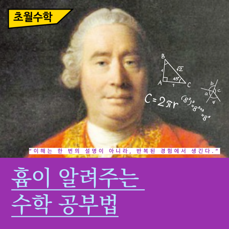 — 이해는 ‘경험의 반복’에서 만들어진다 수학이 안 될 때 우리는 흔히 이렇게 말한다. “이해는 한 것 같은데, 막상 문제를 풀면 손이 안 움직여요.” 이 말, 꽤 정확하다. 이해했다고 느끼는 것과 실제로 풀 수 있는 것은 다르기 때문이다. 흄은 인간이 세상을 이해하는 방식이 논리 이전에 경험의 반복이라고 보았다. 우리는 원인을 ‘논리적으로 증명’해서 믿는 게 아니라, 비슷한 일이 반복되는 걸 보며 자연스럽게 연결 짓는다. 이 관점은 수학 공부에 그대로 적용된다. 수학 개념을 한 번 설명 들었다고 해서 바로 자기 것이 되지는 않는다. “아, 알겠다”는 느낌은 들지만 조금만 형태가 바뀌면 막히는 이유가 여기에 있다. 이해는 순....... <img src="https://blogthumb.pstatic.net/MjAyNjAyMjRfMTkg/MDAxNzcxOTE2ODE3NzEw.XukHqdjdfidv-oUg4p98Yz6LIcCIvdE70J3m9q0GZdgg.hvylmew5IyxXRjm1CXn7twMHinK-oYyfTkLf4cOZXT4g.PNG/%C8%E2.png?type=s3" />