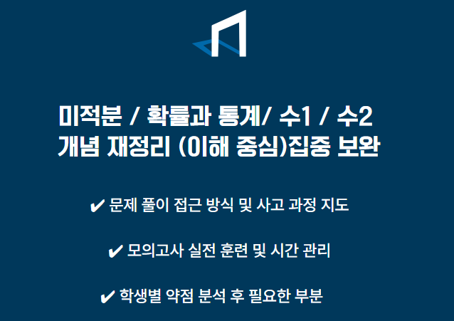 3월 모의고사 이후, 공부 방향을 다시 잡아야 할 시점 수능이 240일 앞으로 다가온 지금, 그리고 3월 모의고사를 치른 이 시점은 단순히 결과를 확인하는 데서 끝나는 시기가 아닙니다. 오히려 앞으로의 공부 방향이 결정되는 중요한 기준점에 가깝습니다. 3월 모의고사 이후, 이런 생각이 들었다면 생각보다 점수가 나오지 않았다 개념이 부족한 것 같은데 어디부터 해야 할지 모르겠다 문제는 풀었지만 왜 틀렸는지 명확하지 않다 시간이 부족해서 아는 문제도 놓쳤다 이 중 하나라도 해당된다면, 지금은 문제를 더 많이 푸는 것보다 공부 방법을 점검해야 할 시기입니다. 수업 안내 이 수업은 단순 문제 풀이가 아니라, 이해 중심 개....... <img src="https://blogthumb.pstatic.net/MjAyNjAzMjBfMjIx/MDAxNzczOTM0NDQ3MjQ2.79fTU6VygBBpbDPwewDe1fVu-4f6aMgbxn4I6iRgc-Ug.3RLcRMJ8dxA9zTVZKqEhvKXUcjO7_3yjOddcqkifeyIg.PNG/%7B72173654-3C31-45E9-AE19-4A189370650D%7D.png?type=s3" />