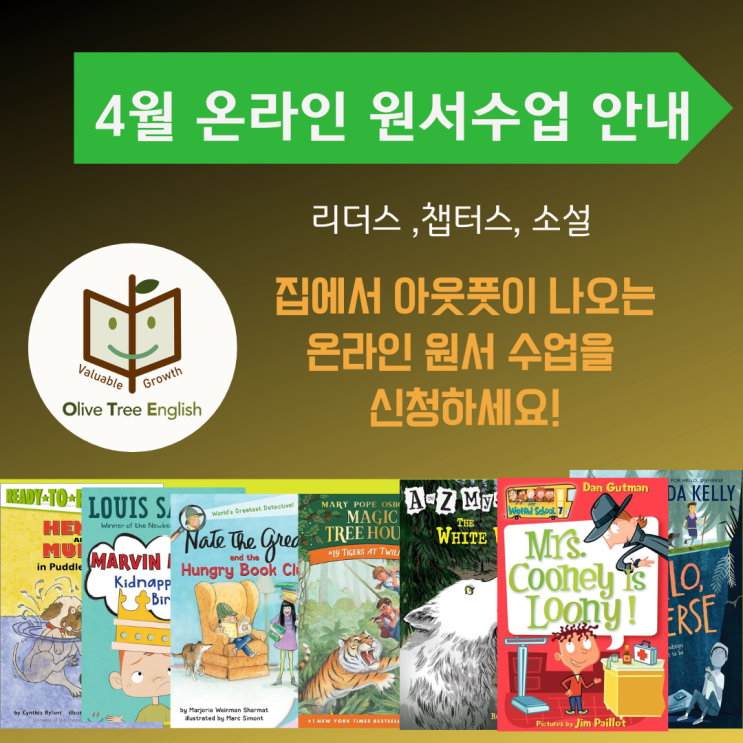 집에서 받는 아웃풋 잘나오는 영어원서 +Writing 수업 해외에서도 지방에서도 한국 저녁시간대를 활용하여 추가 수업을 받을 수 있습니다. 영어원서 좋은데 읽히기만 하지 마시고 제대로 아웃풋 발현하는 정독 수업을 받아 보세요! 언어로서의 영어 수업 한스푼 추가 해보세요! 올리브트리 영어만의 특장점!!! 아웃풋 나오는 탄탄한 커리큘럼 •오프라인 학원에서 이미 검증된 결과의 학습법 •거리와 장소에 상관없이 수업이 가능 •등 하원 시간 절약 •한국시간 저녁시간대 활용 가능 •좀더 학습에 집중 가능 •아이들 한명씩 더 디테일한 케어 가능 발음, 유창성등 •선생님과 유대감이 더욱 강화 어머님들의 후기와 만족도 4월 온라인 원서....... <img src="https://blogthumb.pstatic.net/MjAyNjAzMjNfMTQx/MDAxNzc0MjY2ODQwNjg2.yUlUwZvcc6YnGeYCGMoNNi_bii5ZT6uM3bNZ5dnVtgIg.CctuE8yOvpZTJvW_ZMrpE3kTgFcWNWxZM_hv9bmBl58g.PNG/1.png?type=s3" />