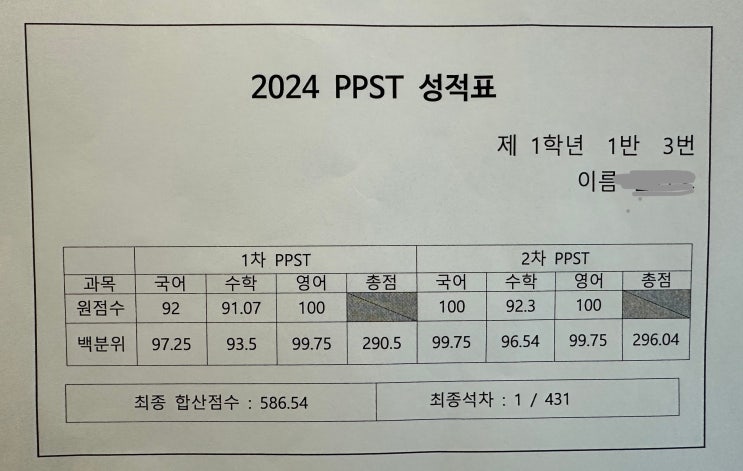 글: 오픽영어 오영한 원장 PPST(Paichai Pre-School Test)는? 배재고 신입생 입학 전 학력평가다. 입학 전 학생들의 학습량을 유지하고 긴장감을 유지시키는 데 긍정적인 영향을 미치고 있다. 아무 시험이 없는 경우를 생각해 보라. 금요일이나 토요일 오전 8시나 7시 50분부터 국·영·수 3과목을 50분씩 3교시에 걸쳐 보며, 두 차례에 걸쳐 시행된다. 시험 범위는 최근 4개년 고1 3월 교육청 모의고사다. 국어는 25문항, 수학은 20문항, 영어는 30문항 정도 출제된다. 모두 객관식이다. 배재고의 엘리트반 소월반 편성은 예전에는 중학교 내신도 들어갔지만 지난해부터 PPST 결과만 반영한다. ‘1학년 1학기’ 소월반 편성이다. 143기는 40명이었....... <img src="https://blogthumb.pstatic.net/MjAyNjAxMDNfMjM5/MDAxNzY3Mzk5MDEzNzUw.q_cXNILrUNBdcfs17FvOt-XwdRvtU7804p7xjIrkPwkg.qB3y6FEH4WoLif6G4HKVunfSWE8e8TIjrH8Gmrhh2KAg.JPEG/PPST%B1%E8%B0%C7%C8%A3.JPG?type=s3" />