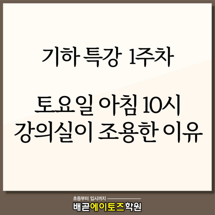안녕하세요, 아이들의 공부습관을 바꾸는배곧에이토즈학원입니다! 2026년 1월 10일 토요일 오전 10시. 배곧 에이토즈학원 '중등 기하(도형) 마스터 특강' 첫 수업이 시작되었습니다. 사실 개강 전, 토요일 오전이라는 시간 배정에 대해 고민이 있었습니다. 물론 우리 재원생들은 평소 정규 수업 전후로 2시간의 '매쓰 클리닉(Math Clinic)' 과정까지 거뜬히 소화해 내는 학습 체력이 훈련된 학생들입니다. 하지만 주말 아침부터 익숙하지 않은 '증명(Proof)' 과정을 다루는 것은 아이들에게도 꽤 부담스러운 일일 수 있기 때문입니다. 다행히 첫 수업 분위기는 우려보다 훨씬 차분하고 진지했습니다. 졸거나 흐트....... <img src="https://blogthumb.pstatic.net/MjAyNjAxMjFfMTA1/MDAxNzY4OTkxNTgzNjY5.zCJ9NY6h1hW1W9brg5f95868rCapTN1F5L-0XZptV98g.dzy9hblOjK_dZL7rco3mD07DNqLbdkMvmYPZ9aAI3z0g.PNG/%BD%E6%B3%D7%C0%CF-001.png?type=s3" />